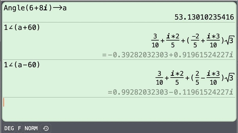 When the vector is written as a complex number, it can be rotated by multiplying by 1∠±60° = (cos(60°)±i·sin(60°). That is what the calculator did.