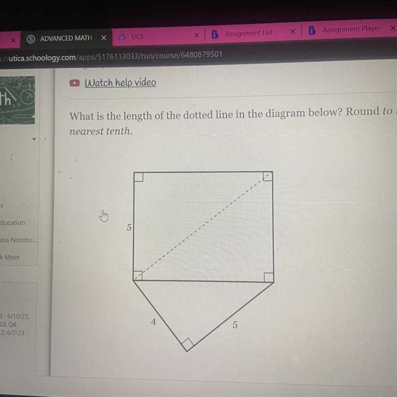 What is the length of the dotted line in the diagram below? round to the nearest tenth
