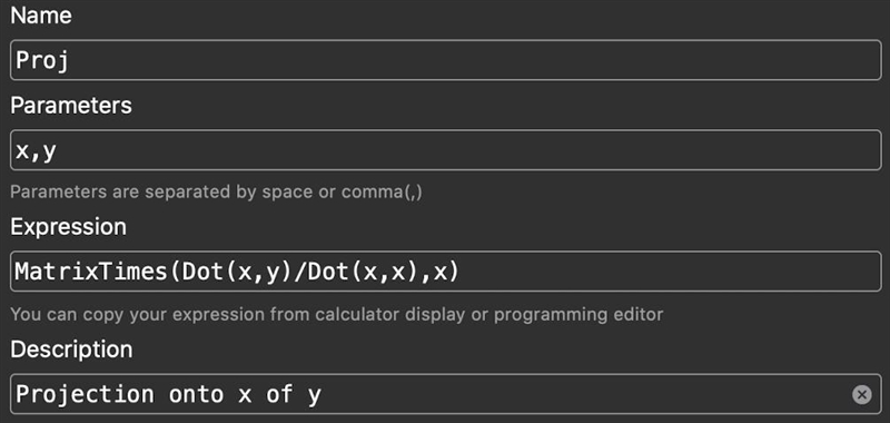 The third attachment shows the calculator definition of the Proj(x, y) function we used. It is the same as that shown above.