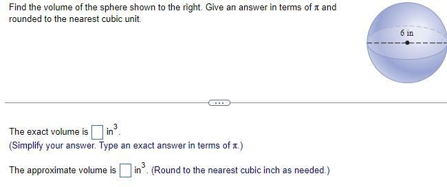 Find the volume of the sphere shown to the right. Give an answer in terms of and rounded-example-1