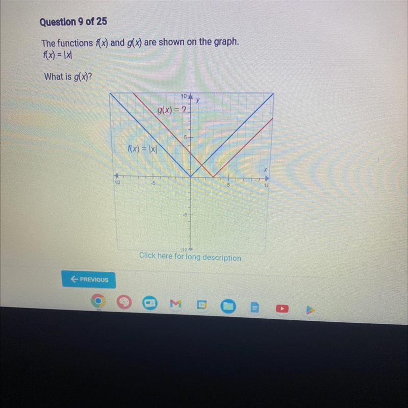 If f(x) = |x|, then g(x) is f(x) shifted to the right 3 units.