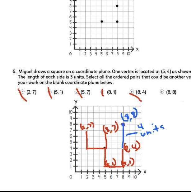 I attached a picture and you can see how each coordinate connects to the original vertex, except 8,8 which is drawn in blue and you can see that it is attached but by four units instead of three, which means it does not work. Hope this helps!!