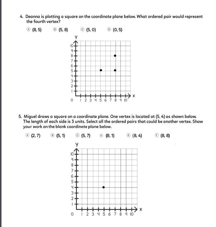 Number 1 is b because if you look each vortex is 3 units apart so if you go three up from (5,5) then you get (5,8)
