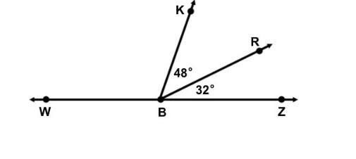 First the equation is 180 because W B Z is 180' - (48' + 32') which is K B R AND R B Z combined and the rest is equal to W B K and thats the equation now 180 - 48 + 32 = 100' which is your answers for all others