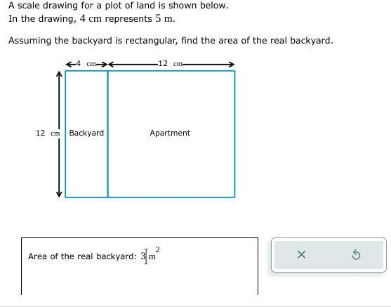 Using the scale given, we will convert the scale drawing measurements to the real backyard measurements.
