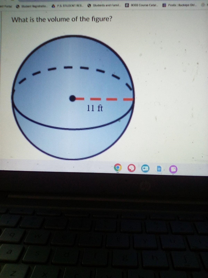 V=4/3πr^3=4/3·π·11^3≈5575.27976