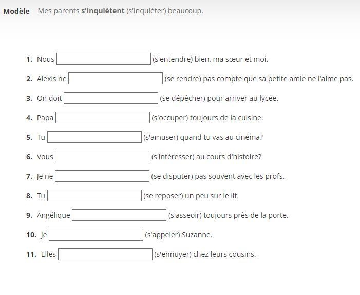 Écrivez la forme correcte de chaque verbe au présent ou à l'infinitif.