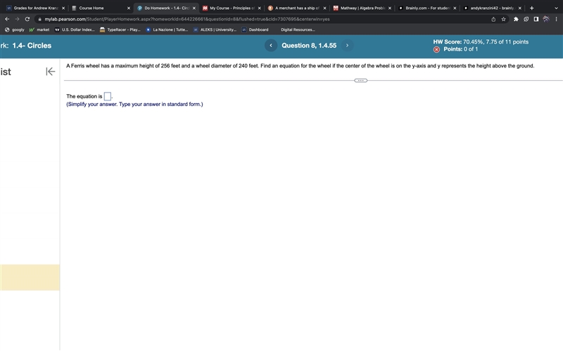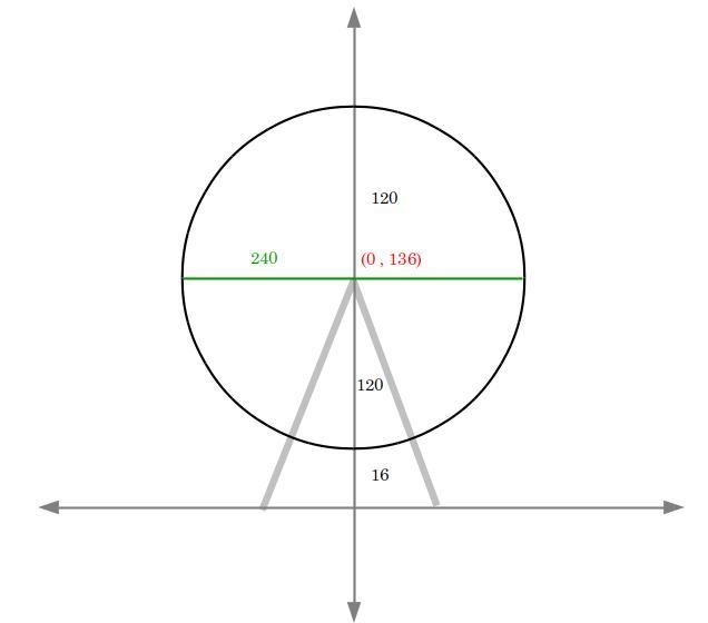 so we can say, what's the equation of a circle with a center at (0 , 136) with a radius of 120?