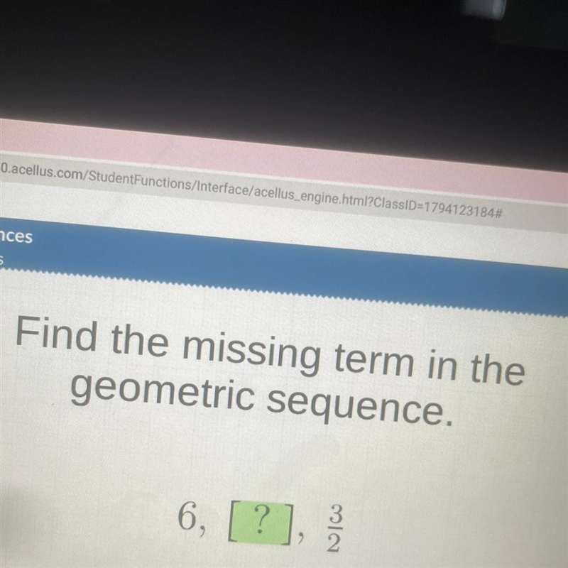You want the middle term of the geometric sequence 6, __, 3/2.