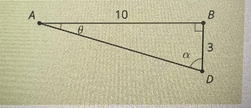 θ = 16.69924423, α = 73.30075577 (round to what problem requests i.e. tenths, hundredths, etc.)