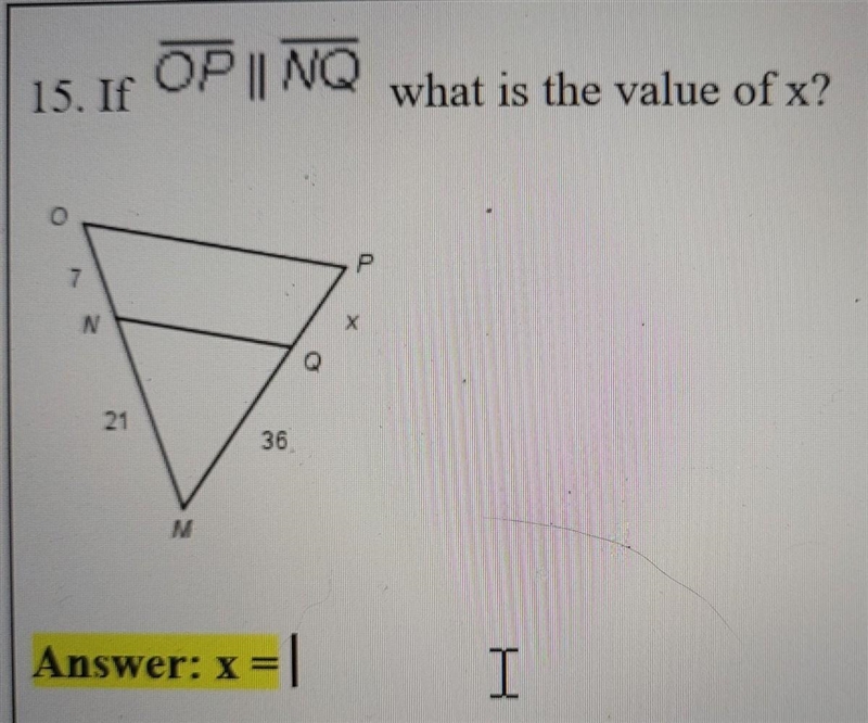 9. Use the Side-Splitter Theorem to find x given that NQ is parallel to OP. 3 5 4