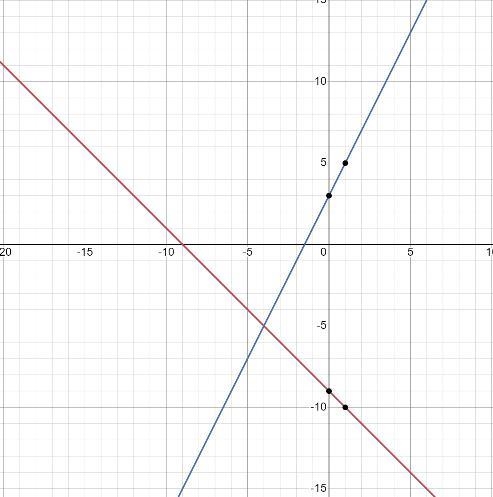 y = 2x + 3 on a graph would be (0,3) & (5,0)
