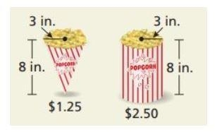 As we see the second choice is better, since with twice the higher price it offers three times more of popcorn.