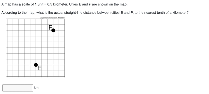 Horizontal distance (x) from E to F is 3 units = 1.5 km