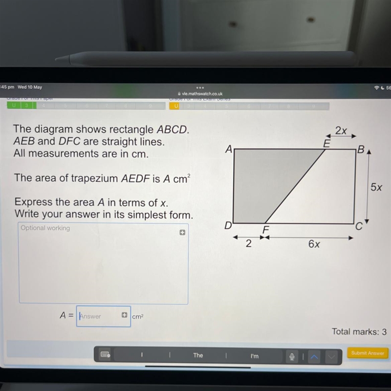 We can break up trapezium AEDF into two smaller trapeziums: ABED and EDCF.