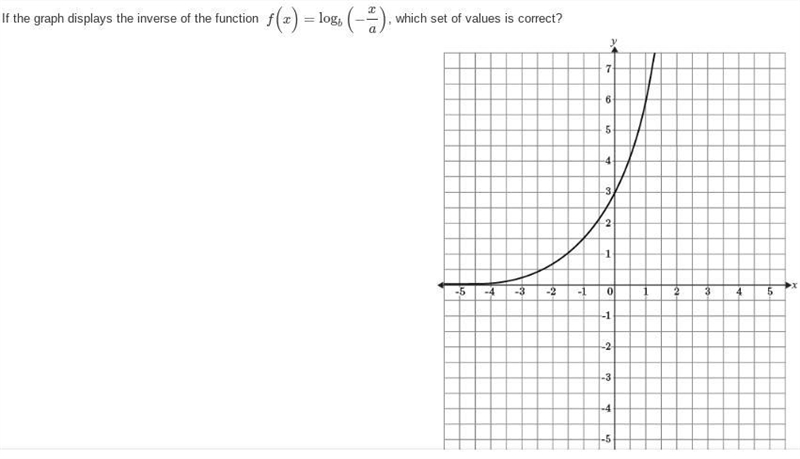 100 points!! The question and graph is provided with the attached image. A. {a=2, b=3} B. {a=3, b=2} C. {a=−3, b=2} D. {a=2, b=−3}