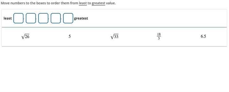 Move the numbers from the least to greatest amount of value. (late work, need to get done asap)