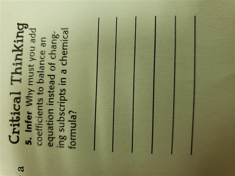 infer why must you add coefficients to balance an equation instead of changing subscripts in a chemical formula
