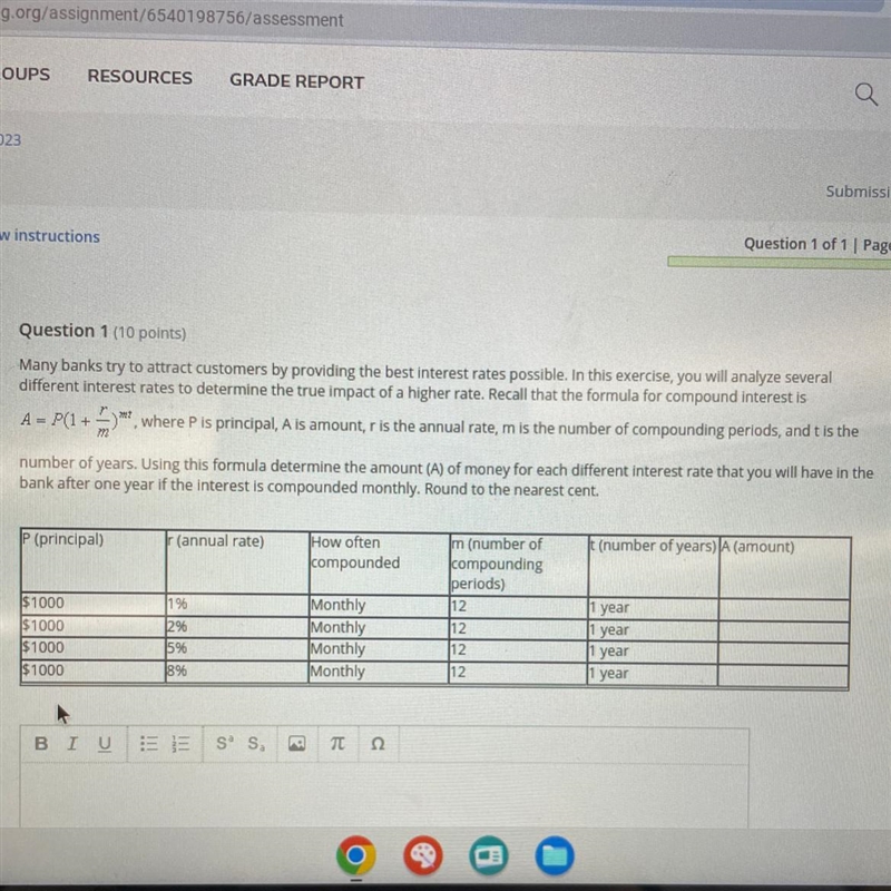 number of years. Using this formula determine the amount (A) of money for each different interest rate that you will have in the