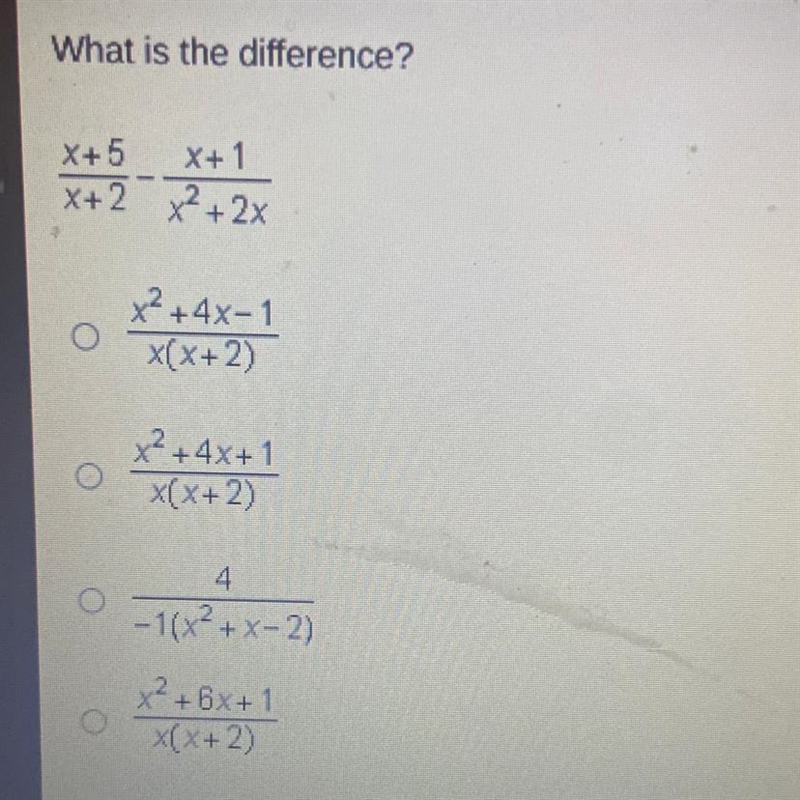 What is the difference? X+5 X+1 x+ 2 x²+2x O O O O x²+4x-1 x(x+2) x²+4x+1 x(x+2) 4 -1(x²+x-2) x²+6x+1 X(X+2)