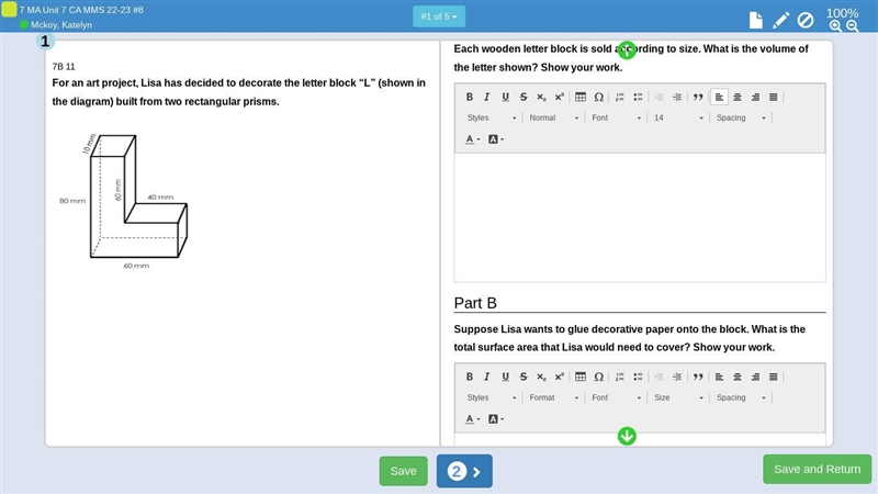For an art project, Lisa has decided to decorate the letter block “L” (shown in the diagram) built from two rectangular prisms. (HELP ME)