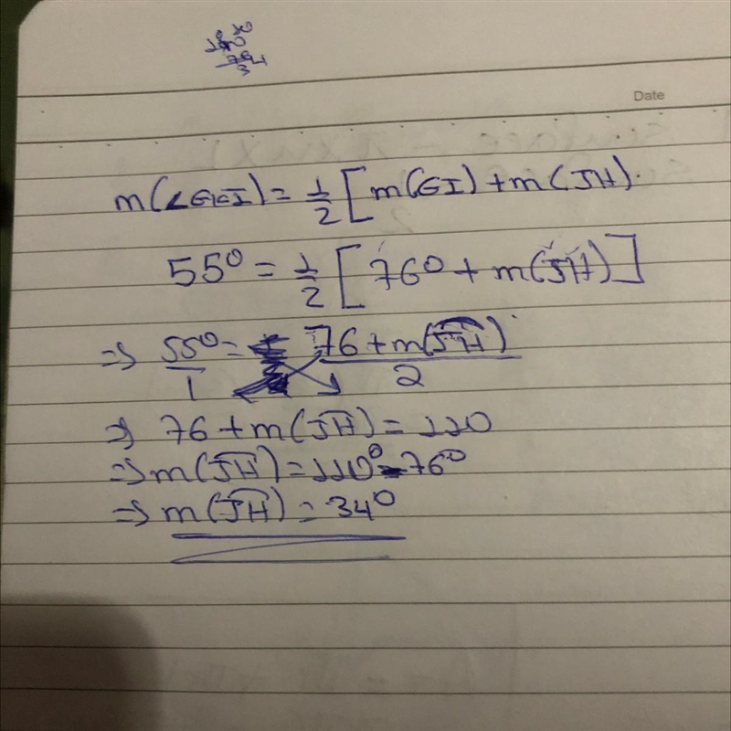 m(GKI)=1/2[m(arc GI)+m(arc JH)