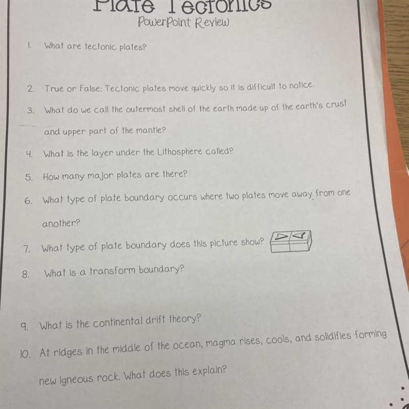Answer: tectonic plates are the pieces of the earths crust that are broken, an lay on top of the asthenosphere.