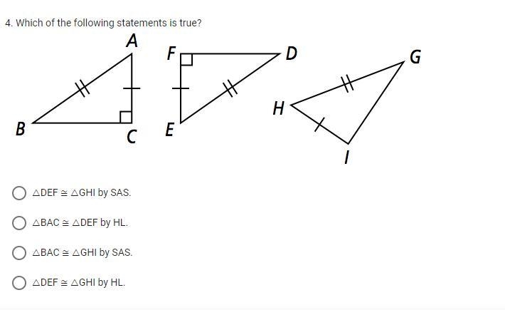 HL only applies to right triangles. ∆GHI is not marked as a right triangle, so HL does not apply to that triangle.