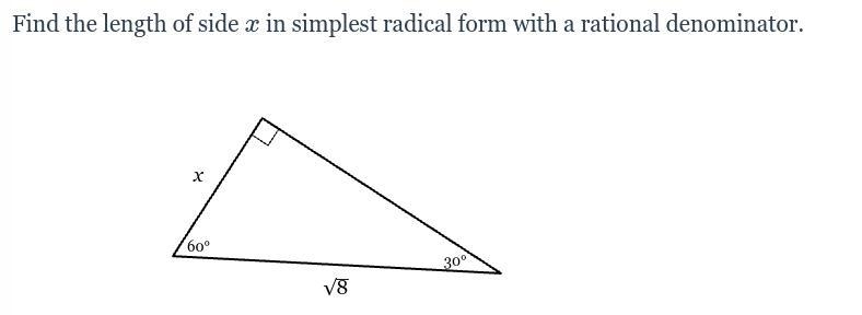 for this one cos 60 = x/ sqrt(8)