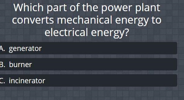 The generator is the part of the power plant that converts mechanical energy to electrical energy.