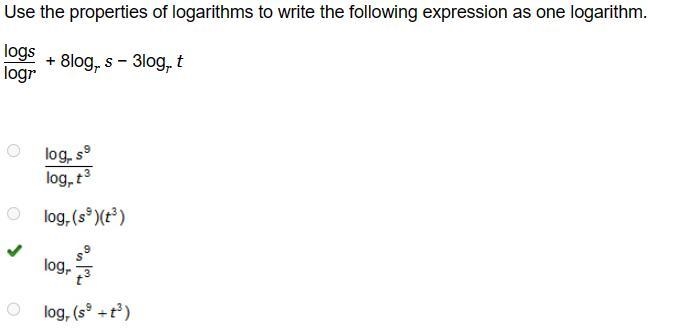 Use the properties of logarithms to write the following expression as one logarithm.