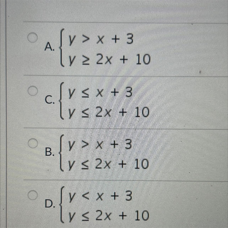 The ordered pair (-1, 5) is a solution of which system?
