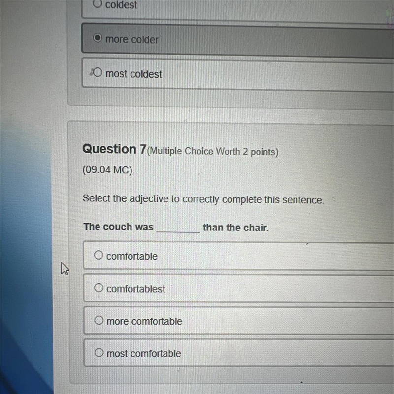 the couch was more comfortable than the chair is the correct answer