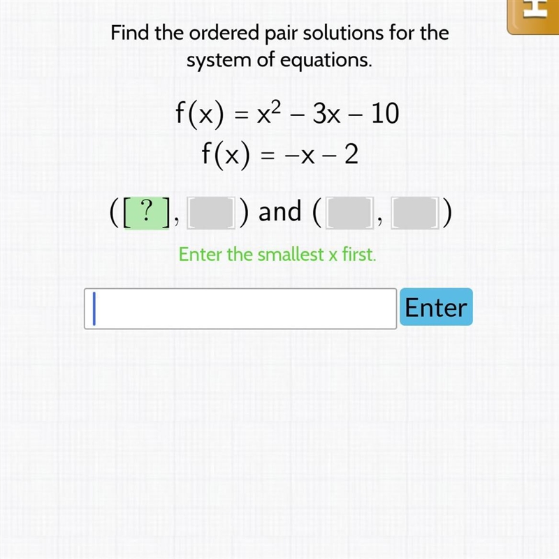 To find the ordered pairs set the right side expressions equal to each other and solve for x, then use those values for x to evaluate f(x) values