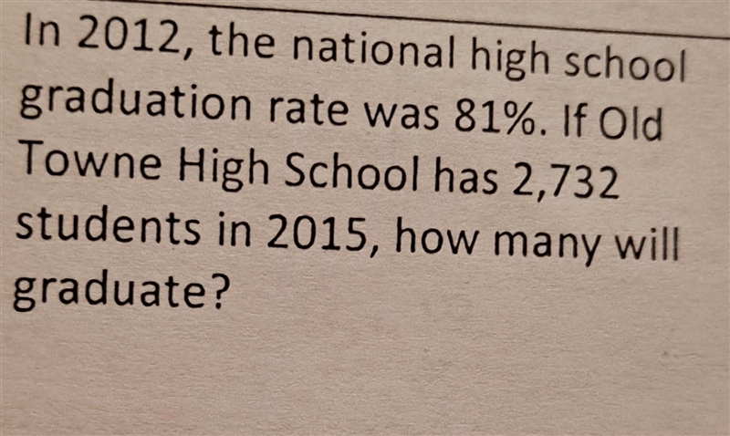 Step-by-step explanation: 81% of 2732 is 2212.92, round it to the nearest tenth and 2213 is your result.