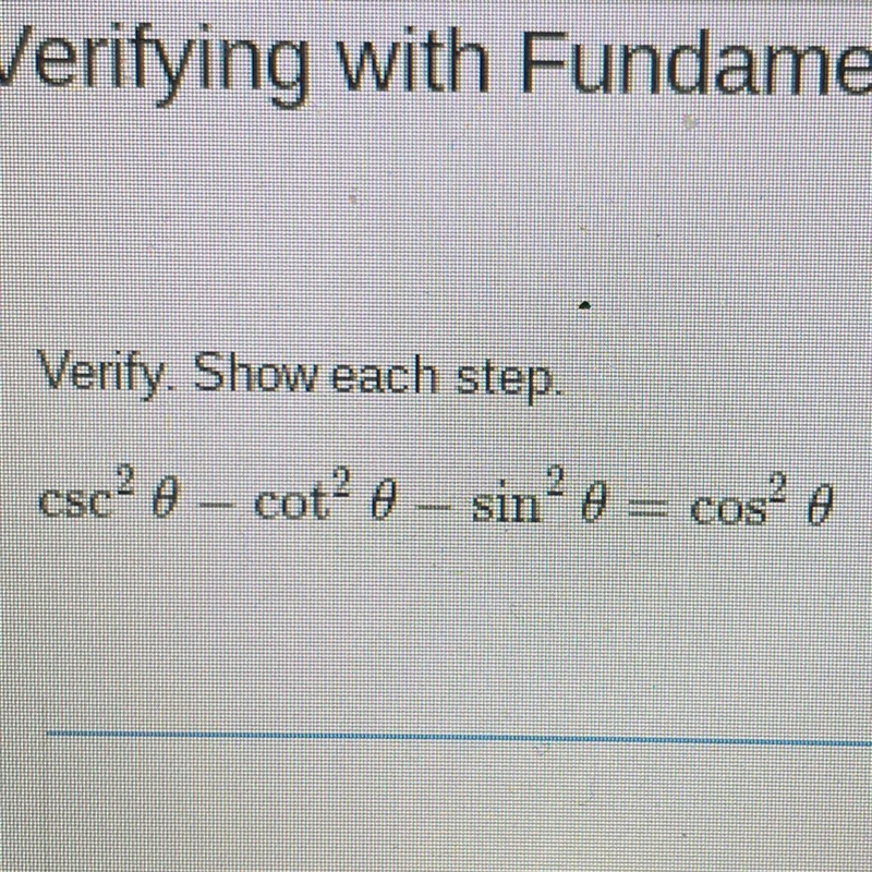 You want to show that csc²(θ) -cot²(θ) -sin²(θ) = cos²(θ).