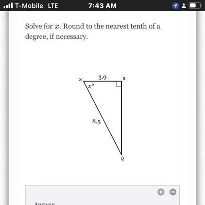 Solve for x. Round to the nearest tenth of a degree, if necessary. S to 3.9 8.5 R Q