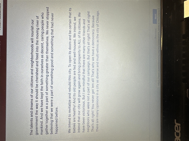 Pls help. due now The following excerpt is from the speech that Harold Washington-example-1
