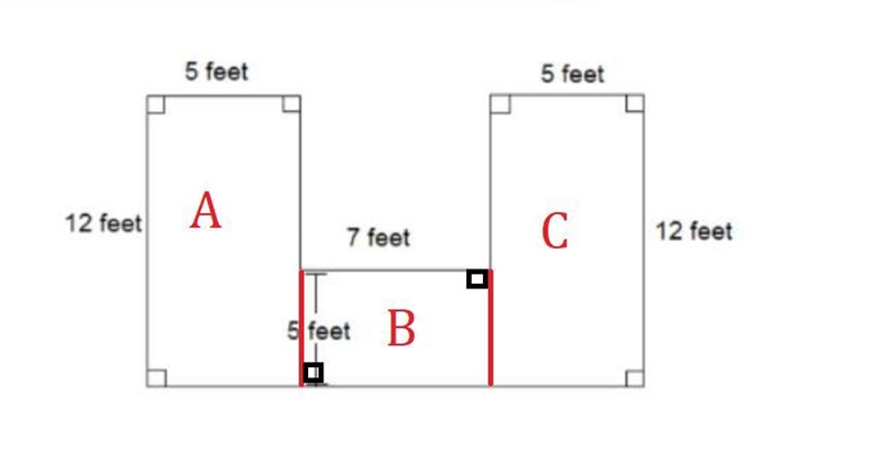To calculate the area of this figure, we will divide it into three smaller figures as shown in the attached file.
