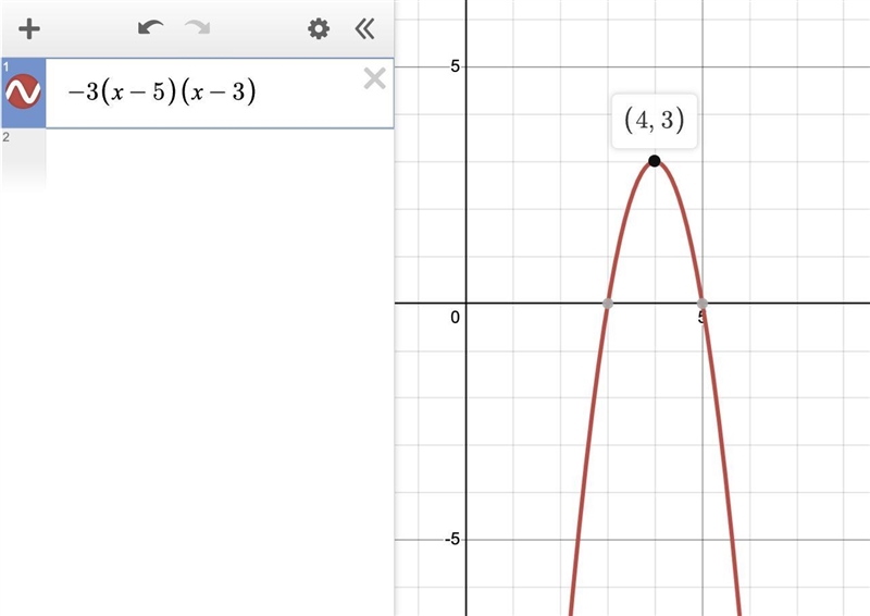The other factors are zero for x=5 and for x=3. The x-value of the maximum is the average of these zeros: (5+3)/2 = 4.