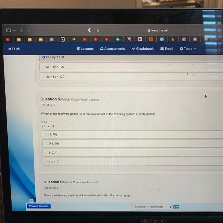 The point that lies in the solution set to the following system of inequalities is (1,10).