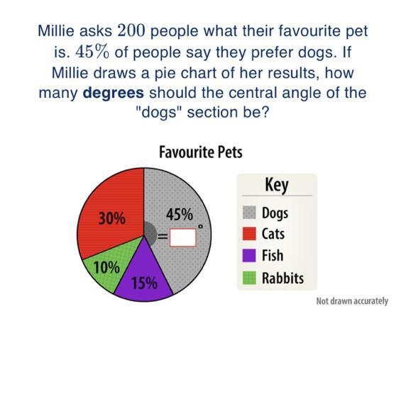 To find the answer to this question, we need to find what 45% of 360 degrees (a circle) is.