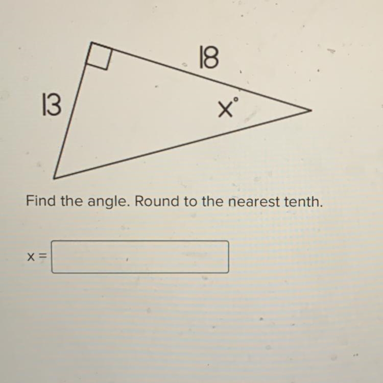 To find angle x in the right triangle with sides 13 and 18, we can use trigonometric functions.