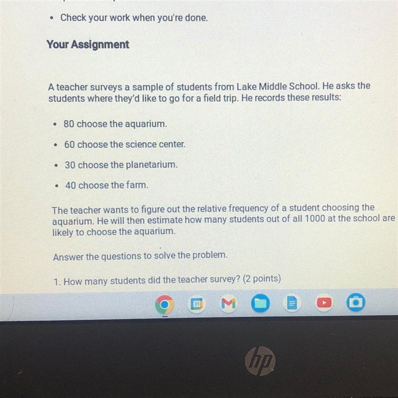 This tells us that, on average, 210 out of every "x" students would choose one of the attractions. We can estimate that a similar percentage of the entire school would choose the aquarium: