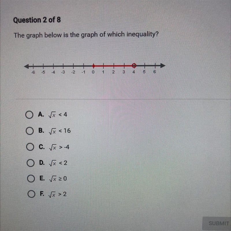 Answer: D (√x < 2)