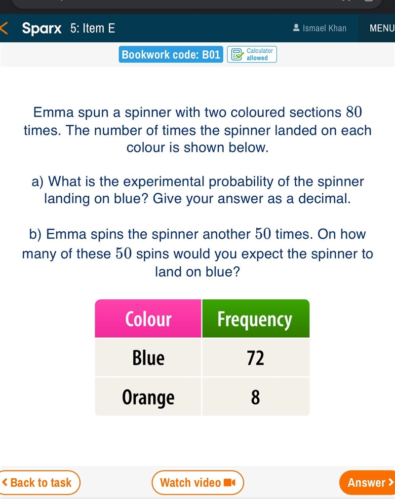 Emma spun a spinner with two coloured sections 80