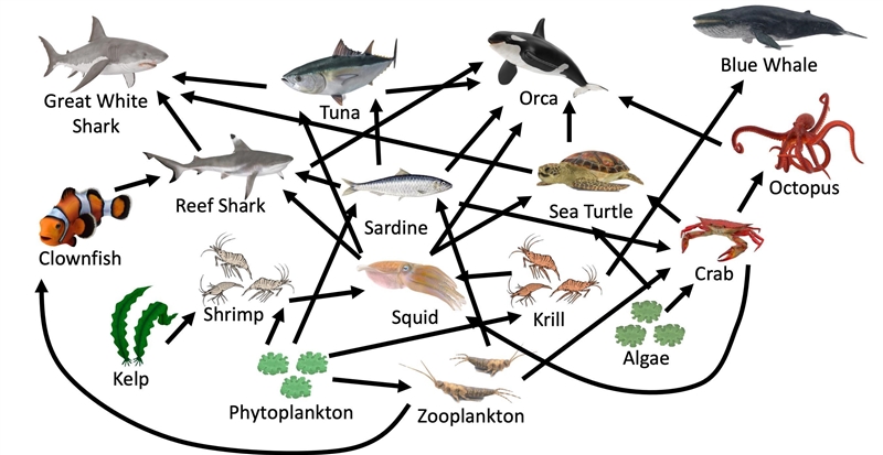 If a new fatal disease affects squids, their population would decrease. As squids are a prey species for many different predators, a decrease in the squid population would likely lead to an increase in the population of their predators' prey. Shrimp and krill are common prey items for squids, so a decrease in the squid population would lead to a decrease in the predation pressure on shrimp and krill. This, in turn, would likely cause an increase in the population of shrimp and krill.