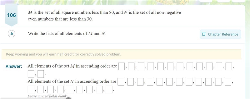 M = {0, 1, 4, 9, 16, 25, 36, 49, 64}