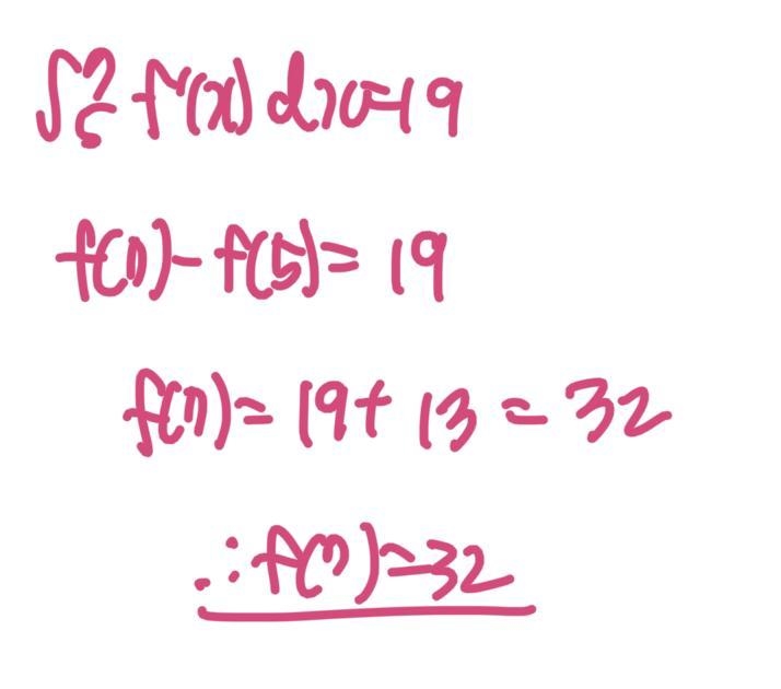 If f(5) = 13, f'(s) is continuous, and integral_5^7 f'(x) dx = 19, what is the value of f(7)? f(7) =