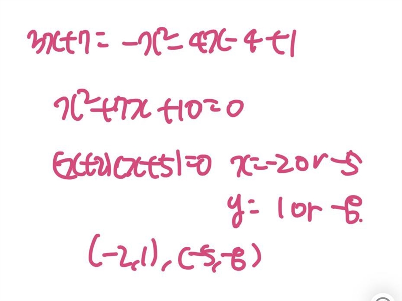 What are the solutions of the system of equations y = -(x + 2)² + 1 and y = 3x + 7?
